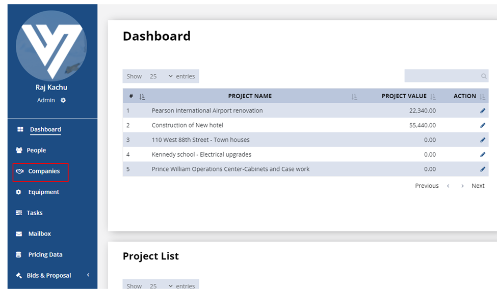 Companies Tab will open on the right side main panel