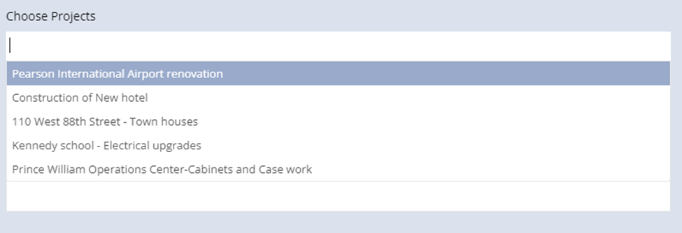 For any type of user, Assign projects from the 'Choose Projects'. All the active projects will appear in the drop-down list. Select one or multiple projects to assign.